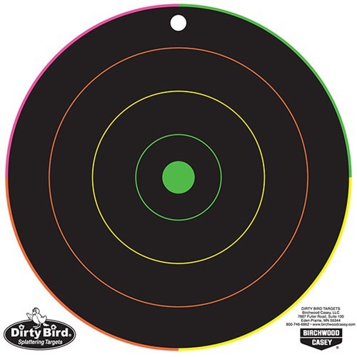 DIRTY BIRD TARGET, MC8-20 8" TARGETS, 20-PAK on suunniteltu tarjoamaan ylivoimainen näkyvyys ampumaharjoituksissa. Neljä mustaa kohdeympyrää, jotka on erotettu erilaisilla fluoresoivilla väri-idoilla, tuottavat värirenkaita jokaisen luodin reiän ympärille, joten voit heti nähdä osumapisteesi ilman tarvetta juosta ampumapaikalle.