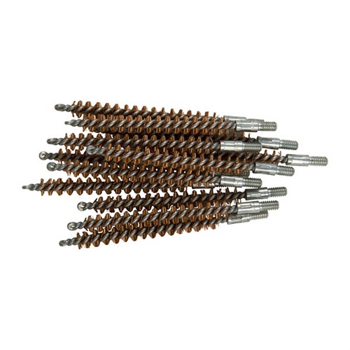 SPECS: Bristles: Extra-thick phosphor bronze. Shank: Steel, looped and wound. Rifle: 3¼" (8.3cm) OAL, 8-32 thread. Rifle: .54 & .58 have a 10-32 thread. Pistol: 2-3/8" (6cm) OAL, 8-32 thread. Shotgun: 2-7/8" (7.3cm) OAL, 5/16"-27 thread.
