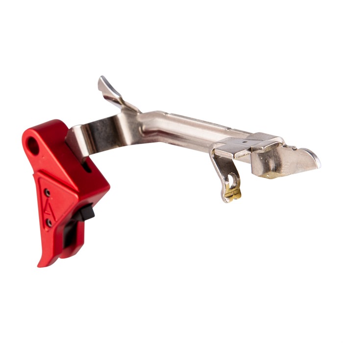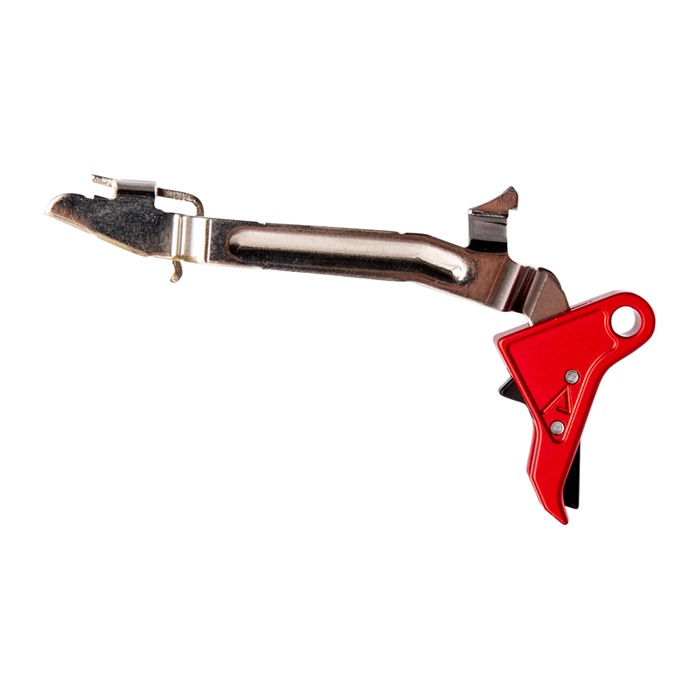 Installing a Red Flat-Faced Trigger Kit from Agency Arms is the quickest, easiest way to make a major upgrade to the performance of your Glock. By a special arrangement with the folks at Agency, Brownells is the ONLY place where you want get this special edition of the flat-faced trigger with an eye-catching, red anodized finish on the trigger shoe. The Red Flat-Face Trigger is a drop-in upgrade - meaning you can do it yourself in a few minutes - that gives your Glock a noticeably smoother trigger pull with minimal pre-travel and a short, snappy, positive reset. Easy, fast drop-in installation Function of critical factory safety lever in trigger face is fully maintained Sturdy all-aluminum trigger shoe has excellent, stable feel Flat face gives the shooter excellent control through entire pull arc Distinct tactile & audible signal when trigger is reset Separate models for Gen1-4 standard frame pistols, new Gen5 pistols, and the G43 Many precision shooters prefer the flat-faced trigger shoe since it reduces the contact area between the finger and trigger. This gives you better control throughout the pull and lets you control perceived pull weight by positioning your finger higher or lower on the shoe for the precise amount of leverage. A "toe" at the bottom of the shoe serves as an indexing point so you won’t put your finger TOO far down. The Red Flat-Face Trigger Kit for Glock is available in 3 configurations: Gen1-4 fits Generation 1 through 4 standard frame pistols chambered in 9mm, .357 SIG and .40 S&W. There's a separate model just for the G43, and the Gen5 model fits ONLY the recent Gen5 G17, 19, 19X, 26 and 34 pistols.