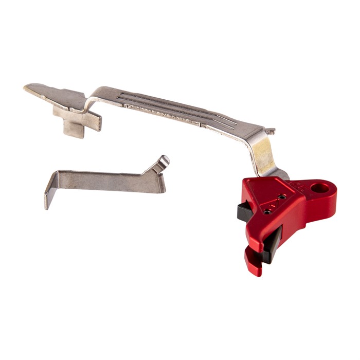 Agency Armsin punainen litteä laukaisukitti on nopein ja helpoin tapa parantaa Glockisi suorituskykyä merkittävästi. Brownells on ainoa paikka, josta voit hankkia tämän erityisen erän litteästä laukaisijasta, jossa on näyttävä punainen anodisoitu pinta laukaisijan kengässä.