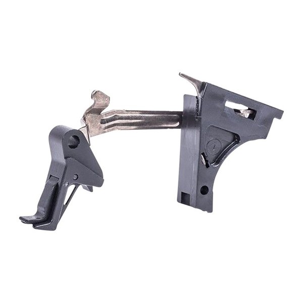 Bringing a wealth of knowledge and experience from its presence in the aftermarket for AR-15 triggers, CMC Triggers entered the handgun market with a modified trigger unit for one of the world's most-popular handgun designs: the Glock. Each CMC Glock Replacement Trigger provides owners with a drop-in unit designed to instantaneously enhance the performance of their gun's trigger. The CMC Triggers Glock Replacement Trigger is a complete unit that features OEM internals, including a Glock OEM trigger bar, springs and housing. However, the design features a flat-faced trigger shoe with a hooked bottom that reduces pull weight by two pounds over the OEM design. The trigger is constructed from a combination of 8620 alloy steel and S7 tool steel and features a positive trigger reset.