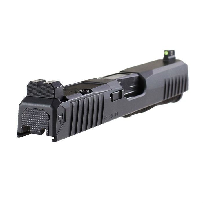 DUSK19 yläosa sisältää uuden DUSK19-profiilin liukusäätimen, joka on valmistettu 17-4SS:stä ja viimeistelty houkuttelevassa mustassa nitride- tai PVD-pinnoitteessa, kuten flat dark earth, öljyllä käsitelty pronssi tai grafiitti harmaa. Liukusäätimen etu- ja takaserratiot tarjoavat helppoutta patruunan lataamiseen ja tarkistamiseen.