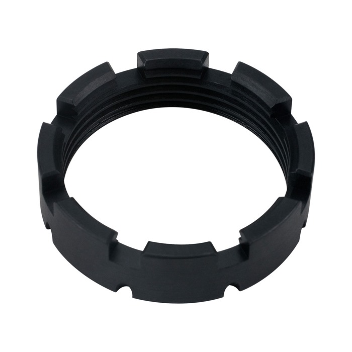 197644347537 Echo Zulu Castle Nut Varmista AR:n castle nutit nopeammin, turvallisemmin ja johdonmukaisemmin Tango Uniformin uudella Echo Zulu Castle Nut -järjestelmällä. Patentoidun EZ castle nutin valmistuksessa on käytetty korkealaatuista 4140 PH -seosterästä, joka on viimeistelty pitkäkestoisella, timanttikovuudella mustalla nitride-pinnoitteella. Se on tarkasti koneistettu modernilla sveitsiläisellä CNC-työstökoneella, ja sen toleranssit täyttävät tai ylittävät mil-spec TDP:n vaatimukset, mukaan lukien todelliset luokka 3 -kierteet. EZ castle nutissa on kahdeksan kollineaarista avain- ja staking-ura, jotka mahdollistavat helpomman visuaalisen kohdistamisen ja useita staking-paikkoja jopa suurimmille päälevyille. Suunniteltu toimimaan joko Echo Zulu Starter Kitin mukana tulevan kaksisuuntaisen staking-opastimen tai Echo Zulu -asekorjaajan avaimen kanssa, ainutlaatuinen EZ castle nut -muotoilu mahdollistaa vahvan ja johdonmukaisen stakingin, jossa on minimaalinen riski muiden komponenttien vaurioitumiselle.Poistettu ohjelmasta