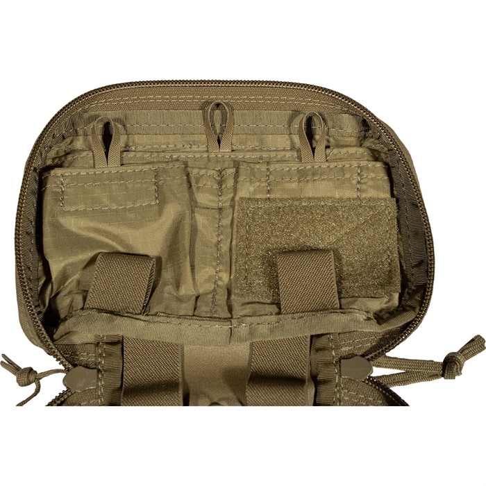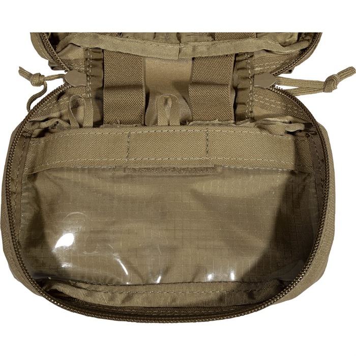 Pakki sisältää sisäisiä taskuja, selkeän ikkunan päätaskussa, 6 elastista silmukkaa ja pienen tarrapaneelin. Se kiinnittyy mihin tahansa modulaariseen varustukseen kahdella lyhyellä MALICE CLIPS® -klipsillä. Saatavana väreissä MultiCam®, Coyote Brown ja Musta.