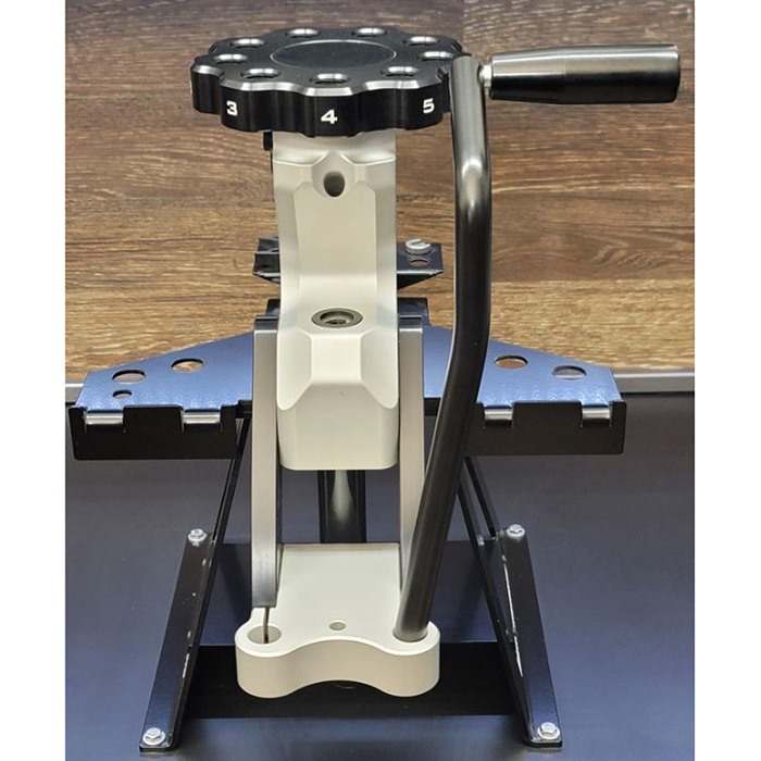 - Etupainotteinen muotoilu: Ergonomiset vivut auttavat sinua asettumaan puristimeesi tiukasti, mikä mahdollistaa täydellisen näkyvyyden jauheannoksesi tarkistamiseen ennen luodin asettamista.