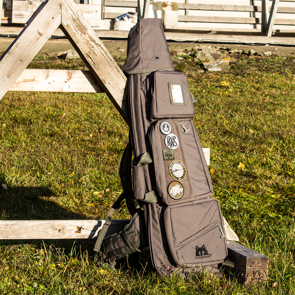Ulfhednarin asepussi on suuri kantolaukku, joka on mukavasti käytettävissä repun olkahihnojen ansiosta. Pitkätkin matkat eivät ole ongelma, ja aseet pysyvät suojattuina kuljetuksen aikana. Asepussi on lisäksi varustettu useilla taskuilla, joten patruunat, korvasuojat ja kaikki tarvittava löytävät paikkansa sisällä.
