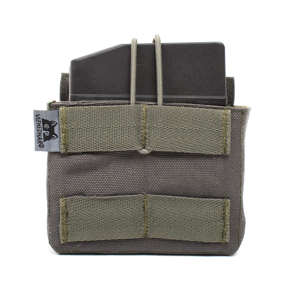 0745114707321 Ulfhednarin universaali patruunapussi, johon mahtuu jopa suuret AICS-patruunat. Velcro-päiden ja bungee-nauhan ansiosta pussia voidaan säätää monen kokoisille patruunoille. Se on valmistettu kestävästä Cordurasta ja siinä on molle-silmukka takana. Pussiin mahtuu jopa kaksi pitkää kivääripatruunaa. Tämä patruunapussi on varustettu molle-standardilla kiinnittämistä varten. Lasercut-vöihin ja -liiveihin, jotka poikkeavat mollesta, sitä ei voi kiinnittää.Poistettu ohjelmasta