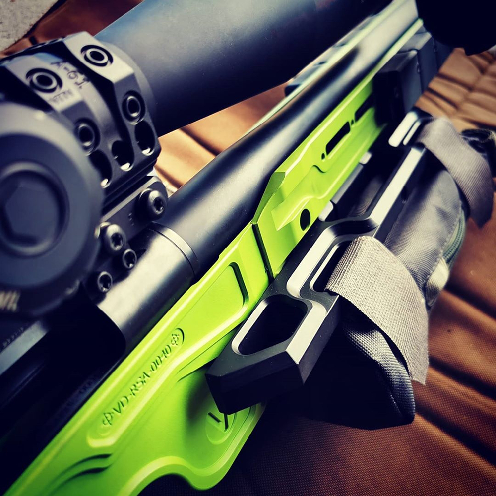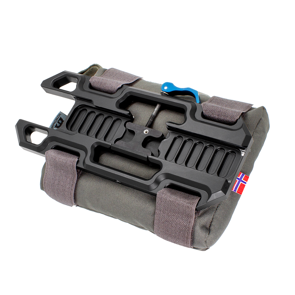 Alusta on helposti kiinnitettävissä käsikahvaasi. Kiinnityspulttien avulla, jotka on integroitu alustaan, tukityyny kiinnitetään alustaan hihnoilla. Muotoiltavan tukityynyn ansiosta voit nyt asettaa kiväärisi mille tahansa pinnalle, olipa se terävä, kulmikas tai jopa reikäinen.