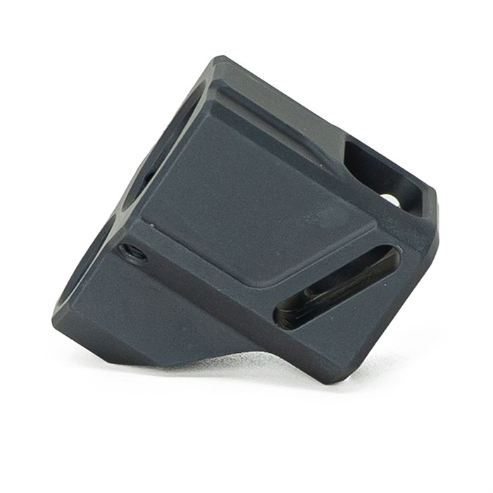 Kompensatori on valmistettu 6061-alumiinista ja siinä on musta anodisoitu pinta. Faxon Pistol Compensators -kompensatoreissa on ainutlaatuisesti kulmautettu etuportti ja yksikammioinen muotoilu, joka parantaa tarkkuutta samalla kun se vähentää piipun nousua ja takaisinlyöntiä. Kulmautuneet portit mahdollistavat kaasun poispäin suuntautumisen ylöspäin, mikä vähentää piipun liikettä ylös ja alas ja parantaa luotettavuutta.