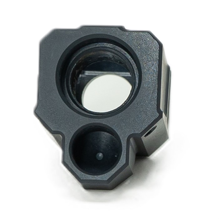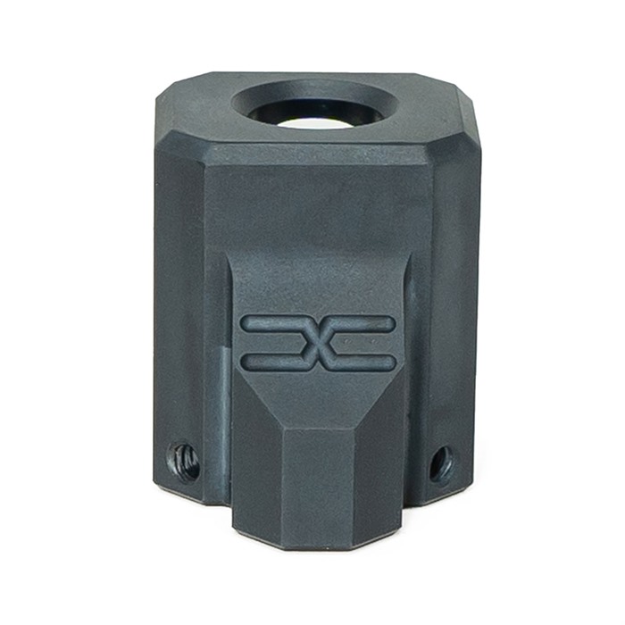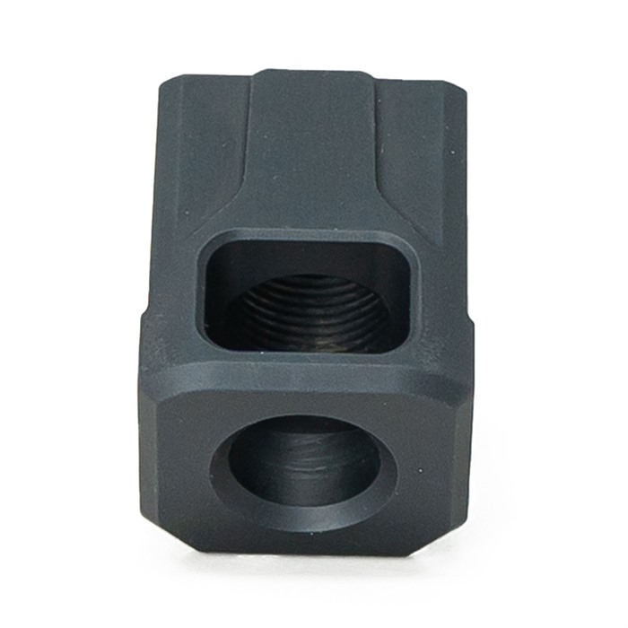 816341026179 Faxon Firearmsin kompensoijat on suunniteltu Glock Gen 3- ja Faxon Firearms FX-19 -pistooleille. Yhteensopivuutta muiden pistooleiden tai sukupolvien kanssa ei voida taata. Yhteensopivuuden ja toiminnan testaus on suoritettu erityisesti seuraavilla malleilla: Glock 19 Gen 3, Glock 17 Gen 3, Glock 34 Gen 3, Faxon Firearms FX-19 Hellfire. Rakennettu 6061-alumiinista mustalla anodisoidulla pinnalla, Faxon Pistol Compensators -kompensaatoreissa on ainutlaatuinen kulma etuportti ja yksikammioinen muotoilu, joka parantaa johdonmukaisuutta samalla kun se vähentää perän nousua ja jälkivapautumista. Kulmaportit mahdollistavat kaasun suuntautumisen ylöspäin sen sijaan, että se vain suuntautuisi sivuille, mikä vähentää ylös- ja alaspäin suuntautuvaa piipun liikettä ja parantaa luotettavuutta. Piipun ulkoneman on tarkoitus sopia tasaisesti liukusäätimen kanssa ja se on optimoitu Faxon-brändin piippuja varten. Kaikille muille piipuilla piipun tulisi ulkonea .600” tai vähemmän tasaiseksi istuvaksi. Jokainen kompensoija toimitetaan täydellisenä, mukana kierreliima, kaksi 6-32 asennusruuvia ja 1/16 Allen-avain. SPECS Pituus: 1.1in Leveys: 1in Korkeus: 1.2in Paino: .06lbs Kierre: 1/2x28 Kaliberi: 9mm *Kompensoijat voivat vaikuttaa pistooleidesi ajoitukseen ja voivat vaatia säätöjä voitelussa, ammuksissa ja muilla alueilla. VASTUUVAPAUSLAUSEKE: "GLOCK" on GLOCK, Inc.:n rekisteröity tavaramerkki ja yksi monista GLOCK, Inc.:n tai GLOCK Ges.m.b.H.:n omistamista tavaramerkeistä. Ei Brownells eikä tämä sivusto ole millään tavalla sidoksissa tai muuten hyväksytty GLOCK, Inc.:n tai GLOCK Ges.m.b.H.:n toimesta. "GLOCK"-termin käyttö tällä sivulla on vain mainostamista varten GLOCK-pistoolien, osien tai komponenttien myynnissä. Aitojen GLOCK, Inc. ja GLOCK Ges.m.b.H. tuotteiden ja osien osalta vieraile sivustolla www.glock.com.Jälkitilaus, toimitusaika n. 4-12 viikkoa USA:n varastosta.