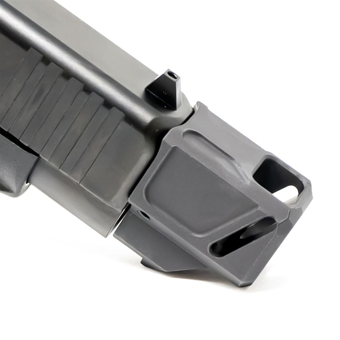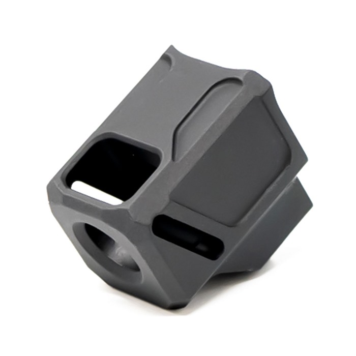 Faxon Firearmsin EXOS-533 pistooli kompensaattori on testattu ja todettu yhteensopivaksi Glock® 43X ja Glock® 48 -pistoolien kanssa. Tämä kompensaattori on valmistettu 6061-alumiinista mustalla anodisoidulla pinnalla, ja se tarjoaa ainutlaatuisen kulmikkaan etuportin yksikammioisen rakenteen, joka parantaa tarkkuutta samalla kun se vähentää piipun nostetta ja rekyyliä.