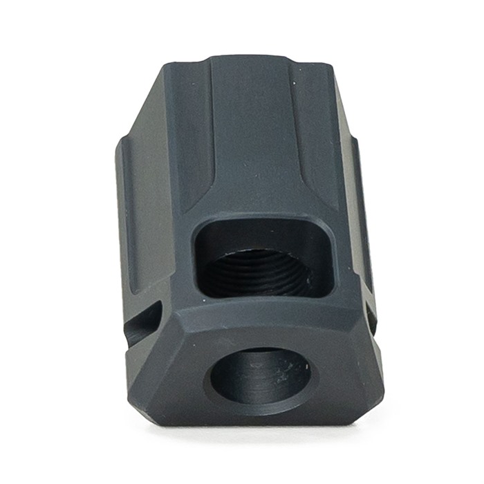 Rakennettu 6061-alumiinista mustalla anodisoidulla pinnalla, Faxon Pistol Compensatorit tarjoavat ainutlaatuisesti kulman muotoillun etuportin yksikammio suunnittelun, joka parantaa laukauksen johdonmukaisuutta samalla vähentäen piipun nousua ja rekyyliä. Kulmikkaat portit sallivat kaasun poiketa ylöspäin sen sijaan, että se poikkeaisi vain sivuille, mikä vähentää ylös- ja alaspäin suuntautuvaa piipun liikettä ja parantaa luotettavuutta.