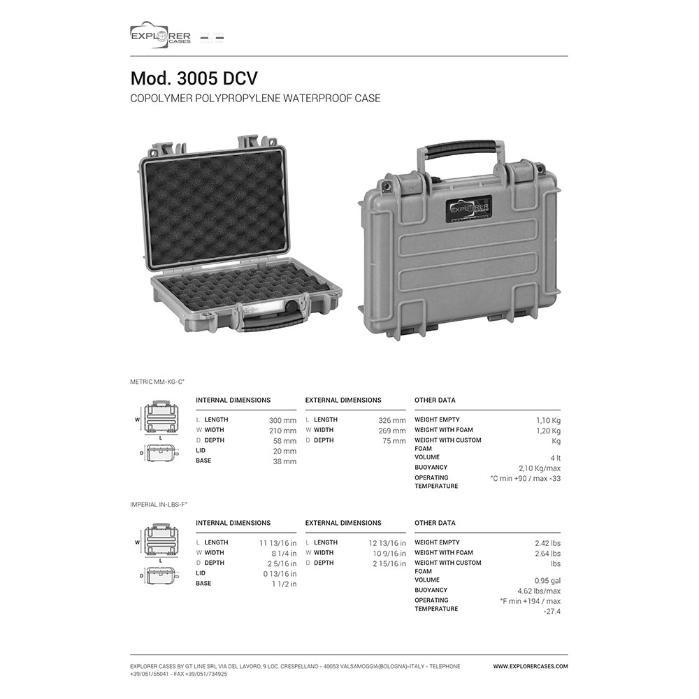 EXPLORER CASES 3005 DCV - des. sand - Convoluted Foam on huipputason aseiden kuljetuslaatikko, joka tarjoaa monipuolisia toimintoja korkealaatuisessa paketissa. Suunniteltu ja valmistettu Italiassa, tämä laukku takaa erinomaisen suojan aseillesi.