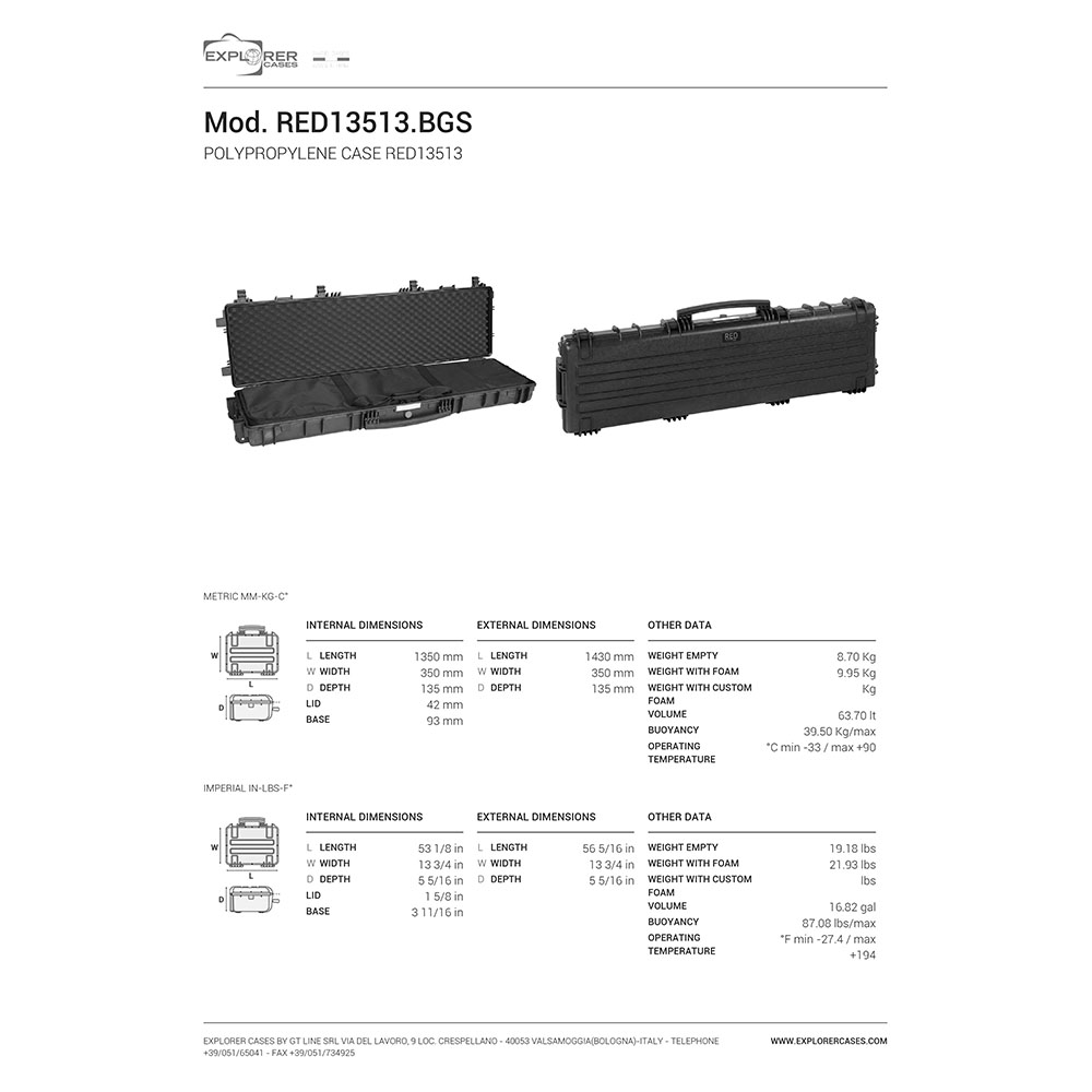 EXPLORER CASES Red 13513 BGS - sisältää Gunbagin. Tämä on huipputason ase- ja varustelaukku, joka tarjoaa monipuolisia toimintoja korkealaatuisessa paketissa. Valmistettu Explorer Casesin toimesta Italiassa.