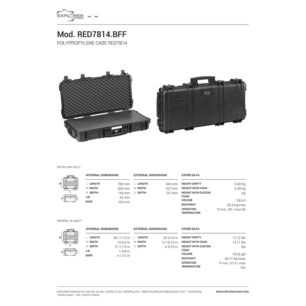 EXPLORER CASES Red 7814 BFF - Density Full Foam on huipputason ase- ja varustekotelo, joka tarjoaa erinomaisen suojan ja monipuoliset toiminnot. Valmistettu Italiassa, Explorer Cases takaa korkealaatuisen suojan.