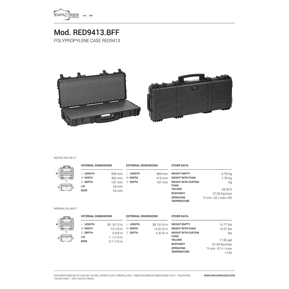 EXPLORER CASES Red 9413 BFF - Density Full Foam on huipputason aselaukku, joka tarjoaa erinomaisen suojan ja monipuoliset toiminnot. Tämä laukku on valmistettu Explorer Casesin toimesta Italiassa.