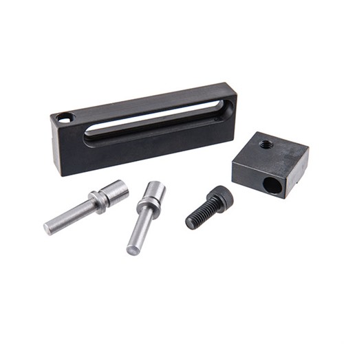 HAMMER/Sear Pin Block Kit toimitetaan läpinäkyvässä muoviboxissa ja sisältää vasara/sear pin blockin sekä yhdeksän erityistä pin-sarjaa suosittuja aseita varten, kuten Browning Hi-Power, Colt Army, Ruger 10/22, AR-15 Suuri ja Pieni Pin, 1911, Uberti Cattleman, Ruger New SA ja Ruger MKII.