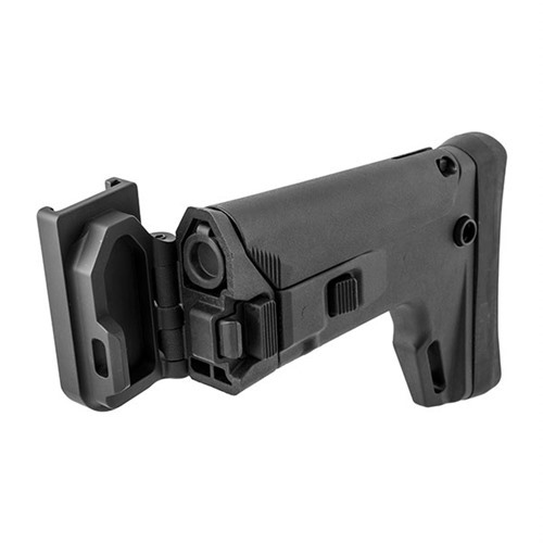 The new Kinetic SAS kit takes the amazing Magpul designed Masada (ACR-E) stock system and allow for direct use with your SCAR platform rifle. Stock ships fully assembled with SCAR adapter for drop in use. Side Folding with Spring lock tension 7 telescoping adjustable positions Adjustable Cheek Riser 6061-T6 aluminum adapter bracket for added stock support and regidity QD Cup (Can be used on either side of the stock) Watertight CR123 battery compartment Approx. 1/4 lb less in overall weight than the factory SCAR stock assembly buttpad Black or Magpul Brown color Weight: Approx. 15.2 oz