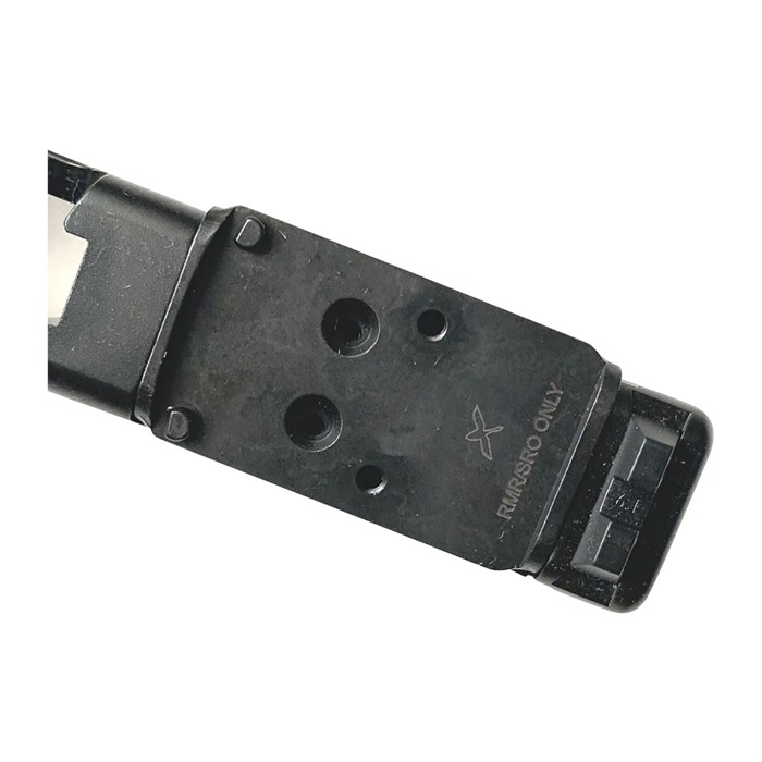OPF-G43x/48, RMRcc (Optics Platform, Forward Controls, G43x/48, RMRcc) is the latest member of the OPF line. G43x and 48 MOS slides are designed for direct mounting of the Shield RMSc sight. Trijicon's RMRcc is longer, and requires an adapter plate which also necessarily raises the mounting surface in order to mount an RMRcc. RMRcc has its own footprint. Gone are the two lug holes in front, these are replaced by two larger diameter threaded posts (bosses) through which the sight to mount/plate screws are installed. The sight to mount/plate screws are also significantly strengthened, though with the OPF-G, RMRcc design that holds the sight immobile on the plate, the larger diameter and stronger screws aren't as important, we always welcome screws that are less likely to strip. With the OPF-G43x/48, RMRcc, we didn't merely raise the mounting surface to provide a platform for the RMRcc. As RMRcc is longer than the G43X/48 MOS cut, the sight overhangs on the slide. When installed, the bottom of RMRcc (with Trijicon provided sealing plate installed) is almost flush with the top of the slide so the sight is as low as possible. We positioned the RMRcc towards the center of the plate as much as feasible, this is done to reduce the amount of unsupported overhang on the RMRcc's sealing plate in front. RMRcc has a rubber gasket around its battery compartment to keep water and moisture at bay, which pushes the sealing plate downward. This isn't an issue if the plate is of the same length as the RMRcc, but with an overhang, it creates a slight gap between the gasket and the sealing plate. OPF-G43x/48, RMRcc's design eliminates the gap/opening between the sight and sealer plate, to the point of emulating a plate that's as long as the sight itself. To wit, if the plate is as long as the RMRcc, it will make the installed height of RMRcc even taller, which is the very reason we chose to let the sight overhang. Torque value: Plate to slide: 12 to15 in·lbs. Sight to plate: 18 in·lbs.. Weight: 0.75oz Material: 1018 steel, black nitrided