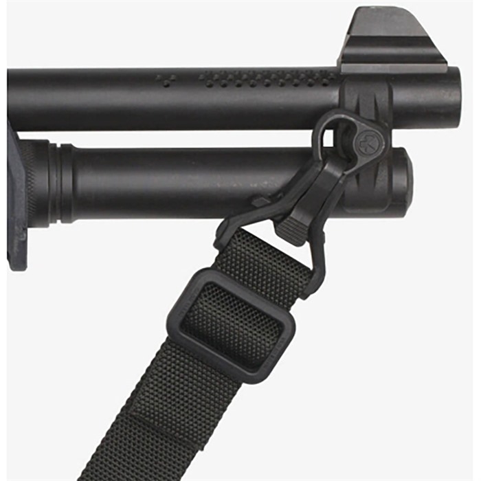 - Kiinnitä hihna: Valintasi mukaan kiinnitä joko Push Button QD Sling Swivel tai yksi pisteen klipsikiinnitys Forward Sling Mountiin.