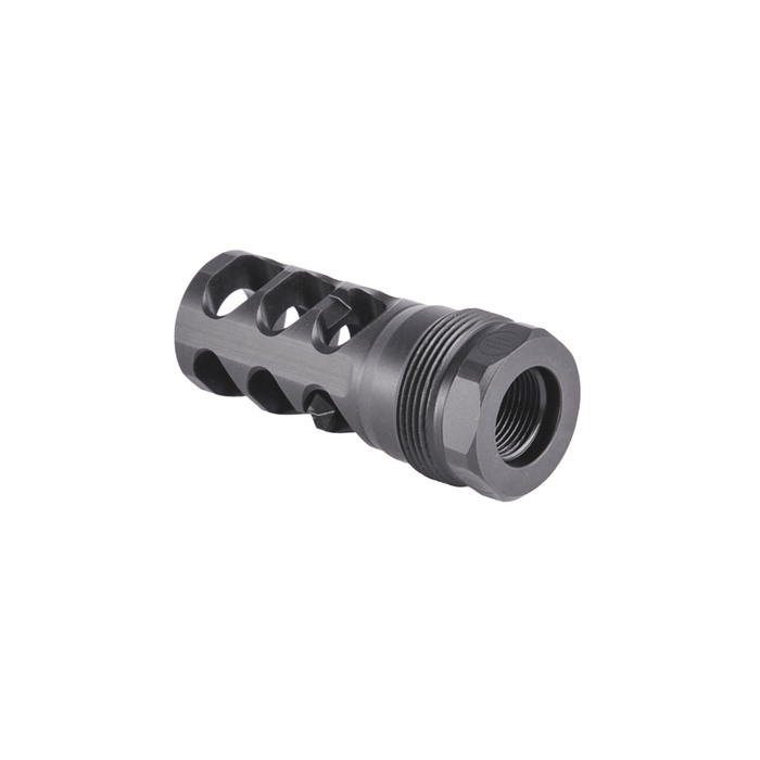Elevate your shooting experience with the cutting-edge PWS FRC compensator, serving as a suppressor host for the Rearden Atlas suppressor mounting system—compatible with popular suppressors like the BDE 556. Crafted with precision and innovation, this compensator stands as a premier selection for a diverse range of shooting scenarios. The PWS FRC compensator sets itself apart by prioritizing recoil reduction as its primary function while simultaneously excelling at flash suppression. Its distinctive 3-port design skillfully redirects flash away from optics and the line of sight, ensuring an unobstructed view and minimizing overpressure. When paired with suppressors, the FRC boasts a tight lockup and maintains it through hard shooting cycles, ensuring reliability in any situation. Mounted precisely, the FRC becomes a crucial component in your rifle's comprehensive recoil management system. By effectively mitigating recoil and muzzle rise, this compensator enables swift follow-up shots, ultimately delivering improved shooter control and accuracy, even in rapid-fire scenarios. Choosing the PWS FRC provides the best of both worlds—superior recoil management and effective flash suppression—making it an indispensable asset for any shooter looking to enhance their shooting prowess and overall experience on the range or in the field. Select between flat shouldered option, for traditional rifle barrels, or tapered shoulder, for barrels with a tapered shoulder behind the muzzle threads.