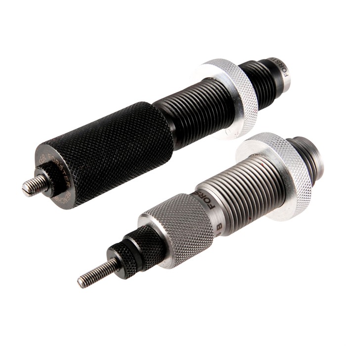 Forster Bench Rest Reloading Dies are of excellent quality and provide the reloader with the ability to produce concentric rounds time and time again. Each die is manufactured from the finest quality steel carefully machined to very tight tolerances. Dies are hand polished both before and after the heat-treating process to guarantee an extra fine finish. All Forster reloading dies feature their Forster Cross Bolt Die Locking Ring that tightens the two ends of the split ring instead of tightening a screw directly into the threads of the die. A full length two die set is the die set beginning reloaders should start with, and the die set most hunters and many target shooters use every time they reload their cases. These Forster full length die sets include a full length sizing die and the Forster Bench Rest seater die. Forster full length sizers feature hand polishing and the E-Z case neck expander system - a Forster exclusive. NATIONAL MATCH DIES reduce headspace by .003" and are intended for bolt action target rifles only.