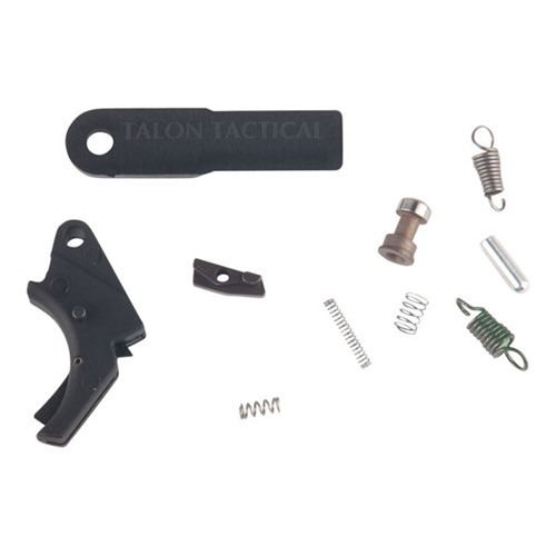 The Apex Polymer Forward Set Trigger Kit reduces pre-travel and over travel. The kit comes with two different trigger return springs, allowing the user to choose between 4lbs for competition use and 5.5 lbs for duty/carry use. FEATURES: Includes forward set sear, trigger, striker block kit, and spring kit Striker block kit includes striker block, spring, and talon tactical tool Spring kit includes 4 and 5.5lb trigger return springs, trigger return spring install tool, sear spring, and ram spring Results in trigger pull weight near 4lbs for competition or 5.5 for duty/carry Smooth uptake and reset Total trigger travel of .120" Improved safety features make the FSS a reliably safe trigger system Works with all Smith & Wesson M&P pistols in all centerfire calibers and configurations except M&P Shield Requires the use of the sear housing block designed for the large size sear plunger and spring (current production as of June, 2011) BENEFITS: Forward set trigger reduces trigger pre-travel and over-travel The center mounted pivoting safety bar prevents unintended operation by creating a trigger block that will not disengage unless the shooter places their finger on the center of the trigger and encourages trigger manipulation directly in line with the bore axis Forward set sear shortens the stroke of the trigger pull by dropping the striker at a point farther forward than the factory sear Forward set striker block has an improved radius on the striker block face that produces a smoother trigger pull and eliminates most false reset issues This kit produces a smooth 4lb. trigger pull for competition or 5.5lbs for duty/carry use Does not fit M&P 2.0 Pistols