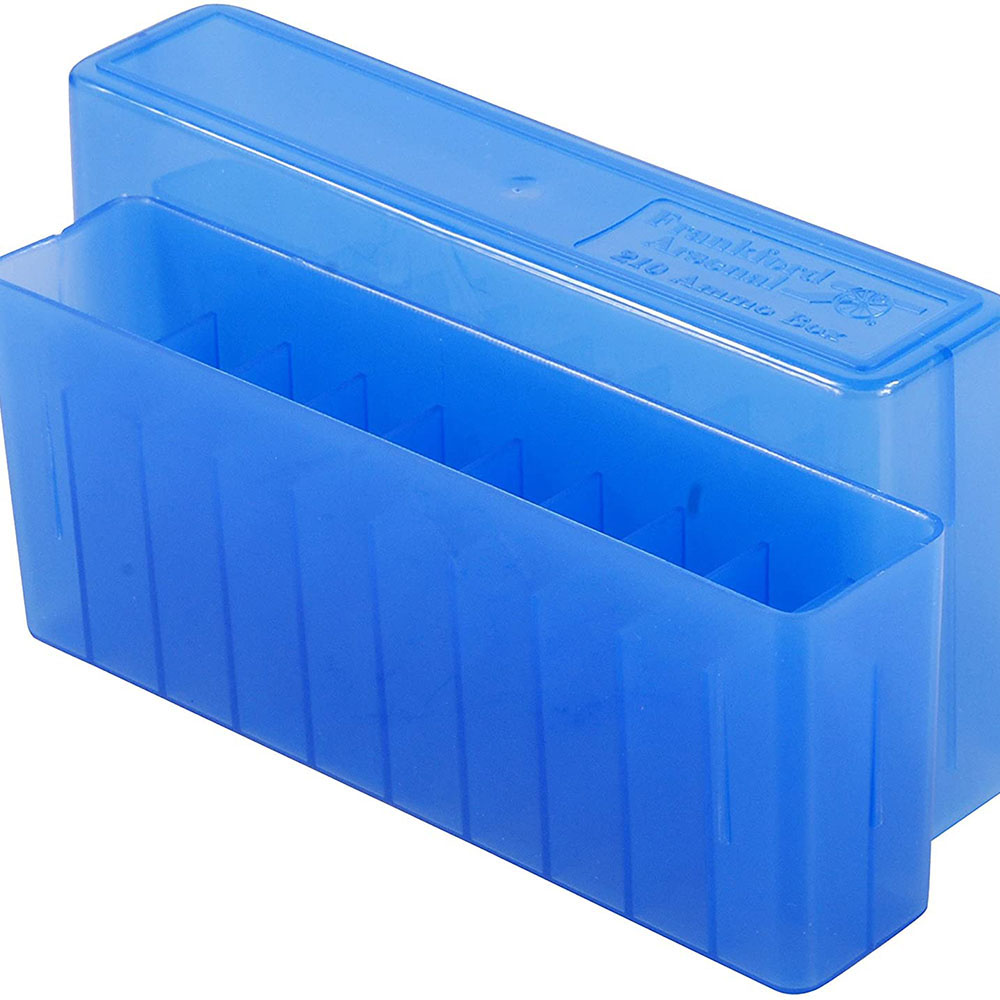 Frankford Arsenal -patruunalaatikot ovat täydellinen ratkaisu ladatulle ammuksellesi. Nämä läpinäkyvät muoviset laatikot tekevät patruunoiden säilyttämisestä ja tunnistamisesta vaivatonta.