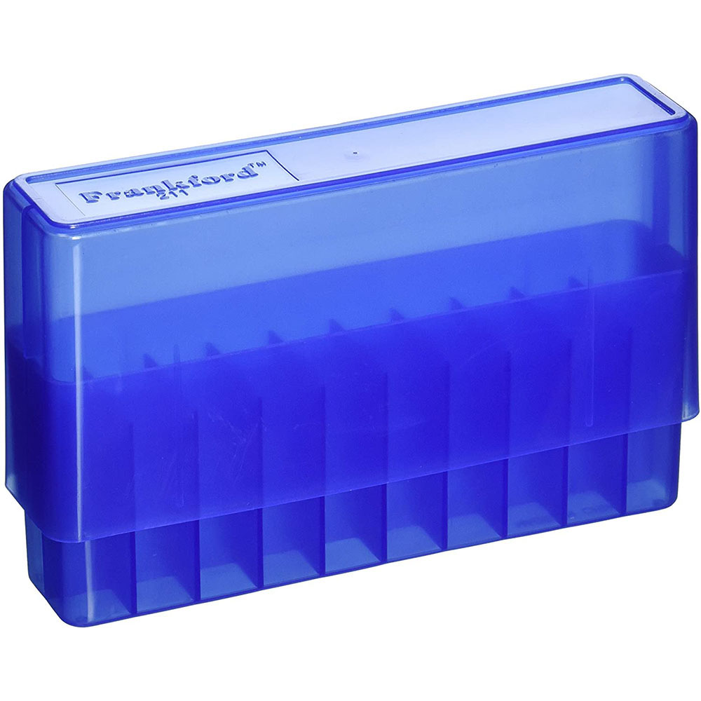 Frankford Arsenalin läpinäkyvät muoviset patruunalaatikot tekevät uudelleen ladattujen patruunoiden säilyttämisestä ja tunnistamisesta vaivatonta. Saatavilla on kaksi eri väriä ja kaksitoista eri kokoa, jotka sopivat useimpiin kaliipereihin.