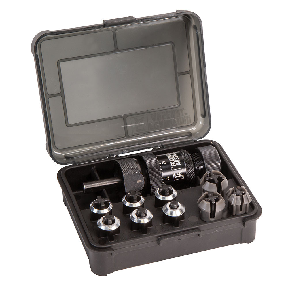 661120416746 • Säädettävä collet-järjestelmä toimii kaikkien olkapääkotelotyyppien kanssa .17 Remingtonista .460 Weatherbyhin • Yhteensopiva lähes kaikkien 1/2" porakoneiden tai porapenkien kanssa • Korkean nopeuden karkaistu ruostumaton terä pysyy terävänä tuhansien laukauksien ajan • Mikro-säädettävä • Universaali leikkausjärjestelmä indeksoi kotelon olkapäille tarkan leikkauksen aikaansaamiseksi joka kerta - sisältää säilytyskotelon, joka pitää colletit ja renkaatJälkitilaus, valmistajan toimitus myöhässä.