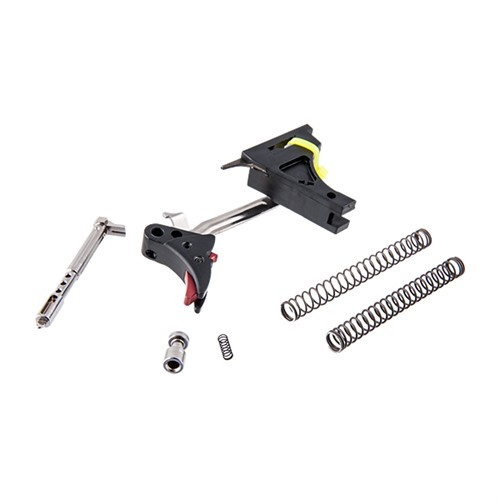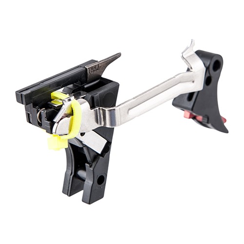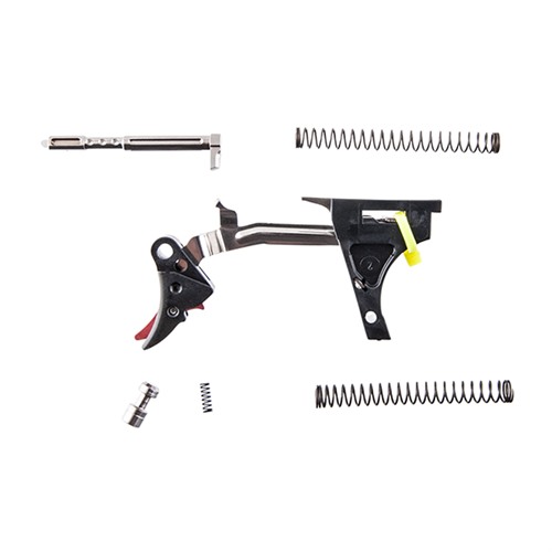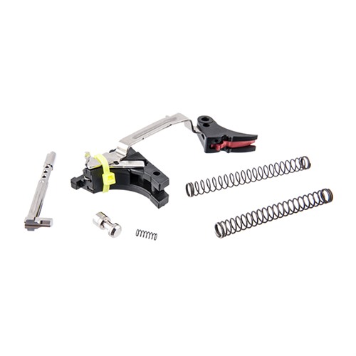 Convenient kits combine easy drop-in installation with the performance benefits of a custom trigger job to give your Glock® an ultra-smooth pull, clean letoff, and short reset without impairing the reliability of the factory safeties. Fully adjustable for pre-travel and over-travel via two easy-to-access hex-head screws (wrench included), so you can tune trigger feel to your exact requirements for maximum control. Trigger shoe and trigger safety are precision machined from 6061 T6 aluminum billet for precise engagement, smooth movement, and superb responsiveness. Engagement surfaces on the stainless steel trigger bar are mirror polished for outstanding sensitivity and consistency. Basic Fulcrum trigger includes preassembled trigger shoe, safety lever, and trigger bar. Ultimate Kit adds to the Complete kit (Complete Trigger Kit contains the trigger, trigger bar, trigger block, ejector, connector, trigger spring, and a lightweight stainless steel firing pin safety plunger and spring to further refine the trigger pull. Comes with a reduced-power striker spring to produce a lighter-feeling trigger for competition, and the factory-weight striker spring for daily carry and duty use), a skeletonized stainless steel striker with reduced mass and highly polished surface to speed lock time and deliver an even lighter, smoother perceived trigger pull, plus ultra-fast reset so you’re ready for follow-up shots.