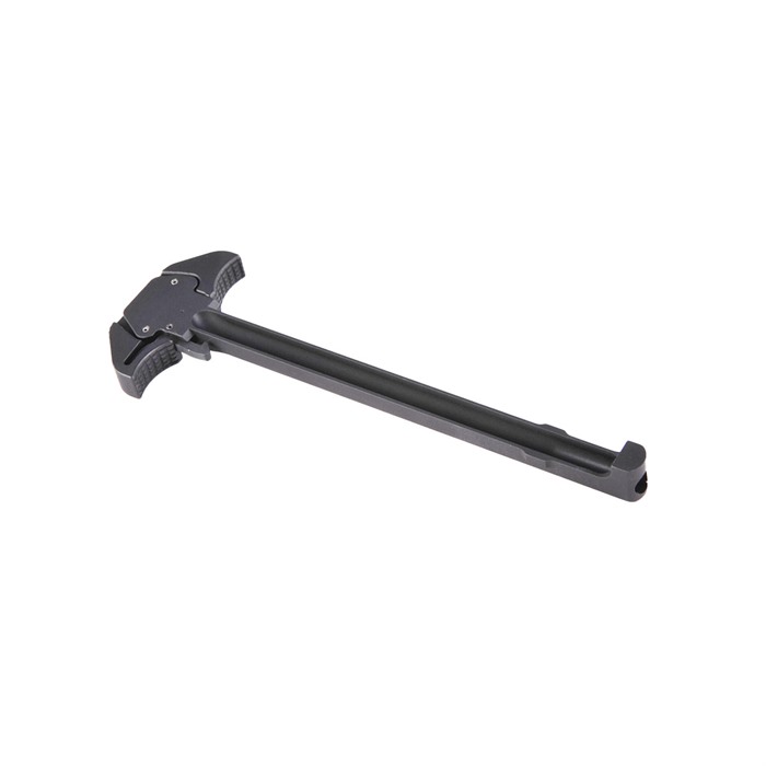 URG-I Airborne Charging Handle 5.56 The Airborne Charging Handle (ACH), was originally developed at the request of an elite organization famous for its expertise in aerial insertion. Now adopted by USASOC and field tested in the most arduous environments,The USASOC ACH now features a roll marked "Geissele Automatics" and the ACH's NSN number diminishing the amount of laser engraving and reducing its visual signature. Unchanged are the lower profile lever design that reduces chances of snagging on gear. The handling surfaces of the levers are checkered for confident operation while wearing gloves or during engagements in less than optimal weather conditions. The Geissele USASOC ACH features a gas mitigating fence at the rear that aids in redirecting gas blow back when shooting short barreled and suppressed weapon systems. The ambidextrous USASOC ACH is 3D machined from a solid block of aircraft grade 7075-T6 aluminum and finished in durable Type-3 Hardcoat anodized. The USASOC ACH weighs in at 1.42oz. URG-I Airborne Charging Handle 5.56 Specification The USASOC Airborne Charging Handle (NSN# 1005-01-672-4803) has been adopted and is currently fielded by USASOC. This version uses rollmarks instead of laser engraving to diminish its visual signature. The USASOC ACH is available in DDC and Black.