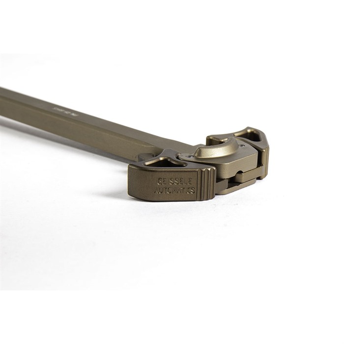URG-I Airborne Charging Handle 5.56 The Airborne Charging Handle (ACH), was originally developed at the request of an elite organization famous for its expertise in aerial insertion. Now adopted by USASOC and field tested in the most arduous environments,The USASOC ACH now features a roll marked "Geissele Automatics" and the ACH's NSN number diminishing the amount of laser engraving and reducing its visual signature. Unchanged are the lower profile lever design that reduces chances of snagging on gear. The handling surfaces of the levers are checkered for confident operation while wearing gloves or during engagements in less than optimal weather conditions. The Geissele USASOC ACH features a gas mitigating fence at the rear that aids in redirecting gas blow back when shooting short barreled and suppressed weapon systems. The ambidextrous USASOC ACH is 3D machined from a solid block of aircraft grade 7075-T6 aluminum and finished in durable Type-3 Hardcoat anodized. The USASOC ACH weighs in at 1.42oz. URG-I Airborne Charging Handle 5.56 Specification The USASOC Airborne Charging Handle (NSN# 1005-01-672-4803) has been adopted and is currently fielded by USASOC. This version uses rollmarks instead of laser engraving to diminish its visual signature. The USASOC ACH is available in DDC and Black.