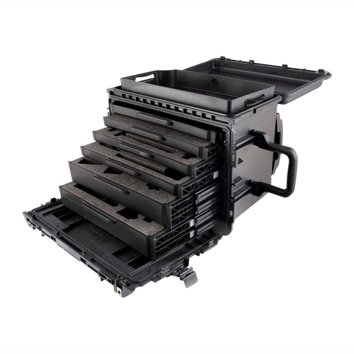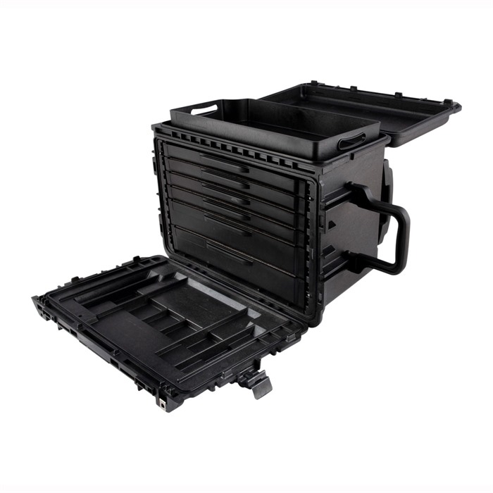 050806011618 Brownellsin Pelicanin asehuoltajan työkalulaatikko on päivitetty entistä kestävämmäksi ja käyttäjäystävällisemmäksi. Uudessa laatikossa on nyt alumiininen liukujärjestelmä, jossa jokainen laatikko liukuu ulos turvalliseen asentoon, mikä helpottaa työkalujesi käyttöä, ja ne voidaan vaivattomasti irrottaa uudelleen sijoittamista tai puhdistamista varten. Valmistettu lähes tuhoutumattomasta muovatusta polymeerihartsista ja se täyttää sotilasstandardin MIL-STD810F. Mukana on esileikatut vaahtomuovisisustat, jotka sopivat kaikkiin standardi- ja premium-tason asehuoltajan työkalupakkauksiin. Toisen sukupolven pidennetty trolley-kahva Irrotettavat laatikot Alumiininen liukujärjestelmä Kaksisuuntaiset kahvat Raskaat tukikohdanhengityslukot Vakaa, leveä kulkujärjestelmä Metalliset perhoslukot Kenttävaihdettavat pyörät Automaattiset paineen tasausventtiilit Työkalut eivät sisällyToimitusaika noin 2-4 viikkoa.