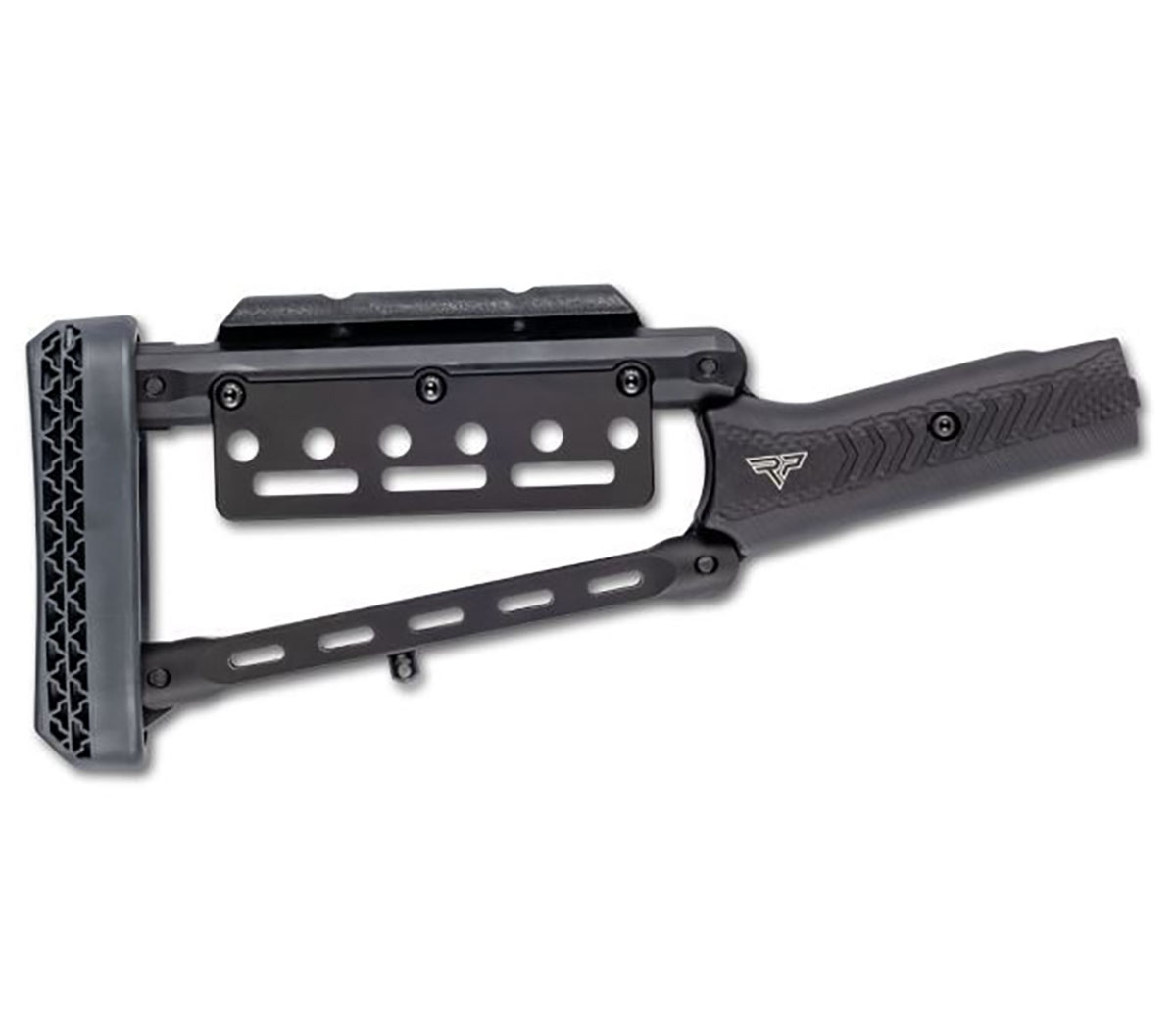 850078134356 The GForce Hugtek Lever Stock Black is a high-quality, lightweight, and durable stock option for GForce Huckleberry lever guns such as the LVR45, LVR357, LVR44, and LVR30. Made from anodized 6061 aluminum, it offers excellent durability while reducing weight to just 595 g (21 oz), making it significantly lighter than the standard wooden stock. Key Features: Material: 6061 aluminum, Type III anodized Weight: 595 g (21 oz), lighter than the factory wooden stock Length of Pull (LOP): Standard 12.5" (31.75 cm), shorter than the original stock. Additional 1/2" (1.27 cm) spacer available for extended LOP. Adjustable Cheek Height: Four pivot points for comfortable aiming with iron sights or mounted optics. AR-Style Buttplate: 6-position design with a Dead Blow recoil pad for optimal recoil reduction. M-LOK Accessory Panel: Includes two sling mount slots for added attachments. Adjustable Cheek Riser: Ensures proper alignment when using taller optics. Included in the package: 1 x Adjustable aluminum stock 1 x Cheek riser 1 x M-LOK sling panel 1 x RPP Dead Blow recoil pad 1 x Hex key