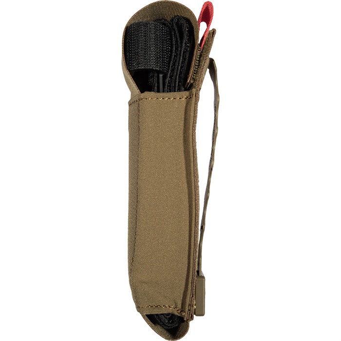TOURNIQUET POUCH on suunniteltu pitämään yksi CAT-tyylinen tourniquet mukanasi. Tämä käytännöllinen pussi on varustettu joustavilla sivuilla ja säädettävällä tarranauhalla, jossa on kirkas punainen merkki. Se kiinnittyy modulaariseen verkkokankaaseen yhdellä lyhyellä MALICE CLIP®:llä (mukana).