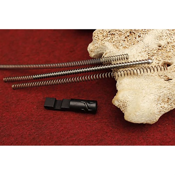 This great upgrade kit for your 10/22 will provide you with a comfortable bolt handle to grasp, a ""super slick"" guide rod, and the ability to tune the recoil of your rifle with their interchangeable springs. All bolt handle lengths are 1 3/4"", which is 1/4"" longer than the factory bolt handle assembly kit giving greater clearance for the shooter's knuckles while racking the bolt. The three tuning springs come in varying tensions for the ultimate in tuning capability. Though by and large the standard tension spring will serve the shooter throughout the different ammunition velocities. If, due to tolerance stacking or preferred ammunition the cycling of the action is out of sync then the shooter has the capability to change the spring without using the more primitive method of cutting coils to tune a spring. FEATURES: Upgrade the bolt handle assembly in the 10/22 3 distinctly contoured handles to choose from Slick guide rod for easy racking Interchangeable tuning springs:(White=standard, Red=10% increase, Grey=10% decrease) Handle Weights: black with black viton cushion = .4 oz silver with black viton cushion= .6 oz black ring (6 ring cuts) = .3 oz silver ring (6 ring cuts) = .6 oz black 762 (modified z shape flute) = .3 oz silver 762 (modified z shape flute) = .6oz Precision ground guide rod is made from hardened tool steel and held to 2/10,000"" tolerance throughout its entire length. The rod is nitride treated which gives its surface a 70C rockwell (harder than a file) surface hardness. Guaranteed the smoothest and slickest guide rod in the industry. Installation instructions: After removing the stock from the barreled action, remove the trigger and bolt stop. This will allow the needed clearance for the bolt to be removed along with the bolt handle assembly. After choosing your proper spring tension slip the bolt handle assembly in from the ejection port, placing the cone end of the rod into the containment hole in the receiver. Then fully compress the bolt handle assembly while placing the bolt on it. After the mating of the bolt handle and bolt, let off the containment allowing the bolt to go forward. Install the bolt stop pin, trigger and stock. The video below offers some of the finer installation points. Packaging Includes: bolt handle guide rod 3 tuning springs
