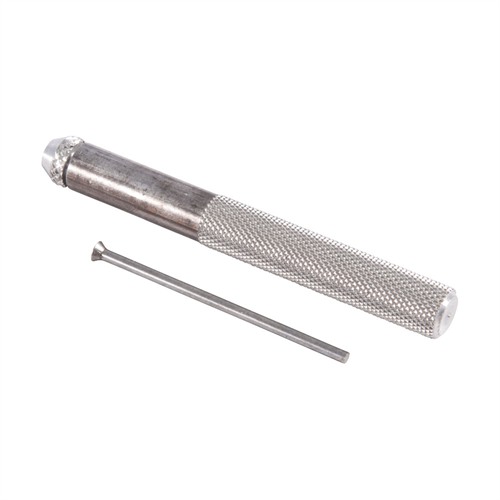 GUNSMITH REPLACEABLE PIN PUNCH SET The Brownells Gunsmith Replaceable Pin Punch Set is a versatile and durable tool designed to enhance efficiency in firearm assembly and maintenance. This innovative set features a robust handle paired with replaceable punch tips, allowing for quick replacements and minimizing downtime during gunsmithing tasks. Description and Features: High-Strength Handle: Crafted from fatigue-proof cold rolled steel (C.R.S.) with a tensile strength exceeding 140,000 psi, the handle ensures durability and longevity. Replaceable Punch Tips: The set includes tool steel, bevel-headed punches that are oil-hardened to a Rockwell hardness of Rc 58-60, with annealed heads at Rc 42-45. These replaceable tips can be ground to exact lengths as needed, offering customization for specific tasks. Secure Grip: A removable knurled chuck securely holds the punch tips in place during use, providing stability and precision. Available Sizes: The replaceable punch tips are available in various diameters to accommodate different pin sizes commonly encountered in firearms: 0.039" 0.060" 0.091" Each size is offered in lengths of 2 inches and 2.5 inches, providing flexibility for various applications. Specifications: Handle Material: Cold rolled steel (C.R.S.) Punch Material: Tool steel Hardness: Punch tips hardened to Rc 58-60; heads annealed to Rc 42-45 Available Punch Diameters: 0.039", 0.060", 0.091" Available Punch Lengths: 2 inches, 2.5 inches Customer Insights: Our customers report that the Brownells Gunsmith Replaceable Pin Punch Set is an invaluable addition to their toolkit. The ability to quickly replace punch tips reduces downtime, and the customizable lengths allow for precise application in various gunsmithing tasks. The high-strength handle provides a comfortable and secure grip, enhancing overall efficiency and accuracy. Incorporating the Brownells Gunsmith Replaceable Pin Punch Set into your gunsmithing toolkit ensures you have a reliable and adaptable solution for pin removal and installation, streamlining your firearm maintenance and assembly processes.
