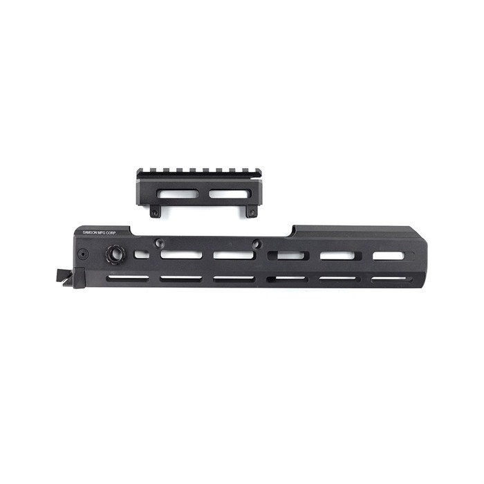 Samson Mfg’s new K-rail is a game changer. This M-LOK® Handguard for AKs is comprehensive and user friendly to install, from the adjustable handguard alignment system to the different versions which accommodate a preferred sling attachment style. No gunsmithing required, though you may need minor fitment or filing depending on your rifle. This new K-Rail fits most stamped AKM rifles and comes in two versions; Sling loop cut out; Non sling loop version with integrated ambidextrous QD point for modern sling attachments FEATURES: EASY INSTALL 5 sided M-LOK® (with top rail M-LOK®) Extended handguard length shields users hand from barrel and allows for more accessories Allows for optic mounting on top rail Works with factory gas tube Does not require removal of lower handguard retainer Adjustable! Twistable wedges in receiver block allow for rotation of handguard as needed for alignment Extended lip index point allows you to feel when your thumb is getting too close to the gas tube. Recessed screws to prevent burns Compatible with after market gas tube rails SPECS: 6061-T6 aluminum extrusion Type III class 2 hardcoat anodize in black 10.5"" from the front of the receiver Includes hardware Width 1.6"" Height without top rail 2" Height with top rail 2.7"