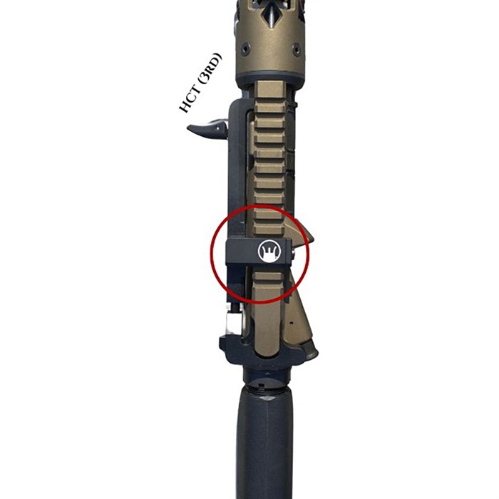 HCT (Hard Charger® Tactical) kiinnitetään 3. Picatinny-raitaan ja on suunniteltu toimimaan standardien, valssattujen, Mil-Spec -tyyppisten ylävastaanottajien kanssa. Tämä suunnittelu asennetaan varasivusteen ja eteenpäin asennetun optiikan väliin.