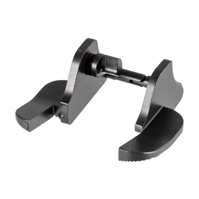 EGW is excited to be one of the few to offer a machined from solid steel thumb safety. EGW saw a need for a cleaner, more solid design as a result of consistent failures of inferior cast and MIM thumb safeties currently on the market. The only way to keep the safeties as straight as possible is to heat treat the steel and then machine it in the hardened condition. The thumb safety is serrated for better gripping capability. Both paddles are machined from solid blocks of heat treated steel. Using their swiss screw machines, EGW manufactures the hammer pins, shortened flat headed .110 sear pin, and our Patent Pending sleeve. The parts are all heat treated. The ambi joint is machined and flat. Not tapered which tends to work out and loosen over time. The sleeve joins each side inside the frame tangs. The grip safety rides on the round sleeve and is not influenced when operating the safety. The sleeve prevents the safety from expanding where the sides join. The sleeve functionally makes each side longer for more secure operation and less flex. The t-slot on the right hand side prevents the safety from walking out. No need to relieve your right hand grips for the safety. This thumb safety still requires fitting for proper function in your 1911 and is not a drop in part. Includes the following Left side safety Right side safety .797" hammer pin .807" hammer pin Sear pin Safety sleeve