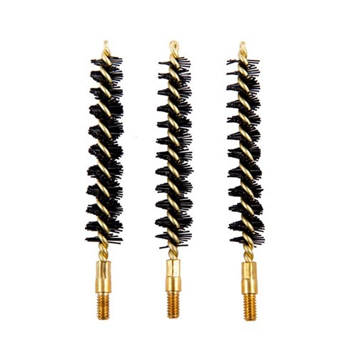 Super-aggressive, nylon brush makes short work of stubborn bore deposits. Extra-stiff, large diameter bristles are safe on rifling and smoothbore surfaces. Won’t deteriorate when used with your favorite solvent. Strong, one-piece, looped and wound brass shank and coupling prevents scratching. SPECS: Bristles: Heavy weight (HW) nylon. Shank: Brass, looped and wound. Overall Length: 3.26” (8.3cm) Thread: 8-32 male