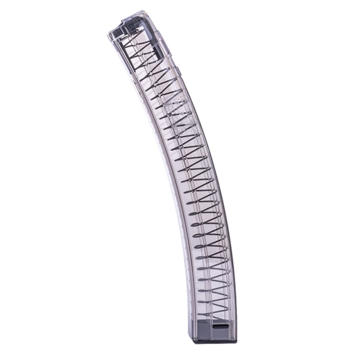 ETS translucent polymer magazines are tough and reliable. Constructed out of lightweight performance polymer, the translucent magazine bodies enable you to keep a close eye on your round count, as well as quickly identify whether or not a magazine is loaded. ETS translucent polymer 9mm H&K MP5 magazines are available in 10, 20, and 30, and 40-round capacities to accommodate your shooting demands. Built to withstand extreme impact, these magazines are ready for duty, defense or recreation. Easy disassembly with specially designed base plate Compatible with aftermarket floorplates Creep resistant - feed lips and body won't spread when stored long term, even when loaded ETS translucent polymer magazines keep your MP5 supplied for duty and for practice.