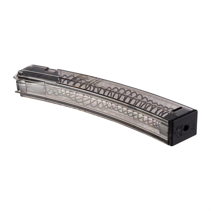 ETS translucent polymer magazines are tough and reliable. Constructed out of lightweight performance polymer, the translucent magazine bodies enable you to keep a close eye on your round count, as well as quickly identify whether or not a magazine is loaded. ETS translucent polymer 9mm H&K MP5 magazines are available in 10, 20, and 30, and 40-round capacities to accommodate your shooting demands. Built to withstand extreme impact, these magazines are ready for duty, defense or recreation. Easy disassembly with specially designed base plate Compatible with aftermarket floorplates Creep resistant - feed lips and body won't spread when stored long term, even when loaded ETS translucent polymer magazines keep your MP5 supplied for duty and for practice.