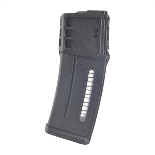 FEATURES: Durable, lightweight, high reliability 30-round polymer magazine designed for the Heckler & Koch G36 Advanced impact resistant polymer construction Easy to disassemble design Flared floorplate Mil-spec black oxide coated stainless steel spring Anti-tilt, self lubricating follower Compatible with all PMAG floor plate accessories Transparent windows on each side of the body Constant curve internal geometry Not compatible with us marketed sl8 Made in USABENEFITS: Four way anti-tilt follower and constant curve geometry ensure proper and smooth feeding Slim-line body enhances pouch compatibility Maglevel round indicator windows allow for quick assessment of remaining round count Compatibility with PMAG 30 floorplate, lock plate, and spring means easily available replacement parts and accessible accessories
