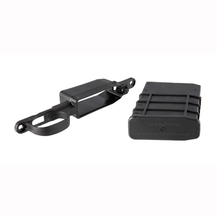 LEGACY SPORTS INTERNATIONAL HOWA 1500 DETACHABLE MAGAZINE DROP-IN KITS The Ammo Boost Detachable Magazine Drop-In Kit for Howa 1500 from Legacy Sports International contains everything you need to boost your 1500's magazine capacity to 5 or 10 rounds. It also gives you the speed and convenience of a detachable box magazine for super-fast reloads. Each Ammo Boost kit consists of (1) the magazine itself and (2) a drop-in bottom metal assembly that replaces your rifle's triggerguard, hinged floorplate, and the surrounding frame. All components are constructed of reinforced, injection-molded, impact-resistant polymer. This super-tough polymer keeps weight and your out-of-pocket cost down. Installation of the Ammo Boost Detachable Magazine Drop-In Kit is fast and simple. Just remove the factory floorplate assembly and install the Legacy parts. Save the factory part in case you ever want to return the rifle to its original configuration. Gives detachable box-mag versatility to Howa 1500 rifles (and clones) 5- and 10-round capacities available Easy, drop-in installation Durable, lightweight molded-polymer construction Additional magazines also available - see separate listings-- EXCLUDES HOWA 1500 SUPERLITE OR WILL NOT WORK WITH THE HOWA 1500 SUPERLITE TORQUE: 30 -35 inch lbs. for screws. Ammo Boost kits are available in both 5-Rd and 10-Rd capacities for long-action (LA) and short-action (SA) Howa 1500 rifles chambered in a variety of popular cartridges. They will also fit Interarms 1500, Mossberg 1500, Smith & Wesson 1500, and Weatherby Vanguard rifles (cat out of the bag: these rifles are all built on Howa 1500 actions!). There's no need to buy a whole new rifle when you can increase the versatility and magazine capacity of the Howa 1500 you already own with an Ammo Boost kit!