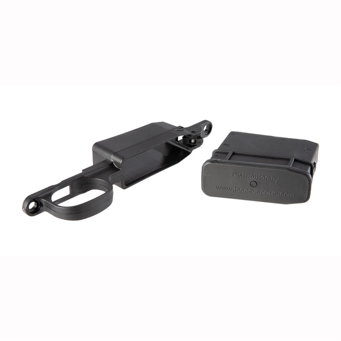 LEGACY SPORTS INTERNATIONAL HOWA 1500 DETACHABLE MAGAZINE DROP-IN KITS The Ammo Boost Detachable Magazine Drop-In Kit for Howa 1500 from Legacy Sports International contains everything you need to boost your 1500's magazine capacity to 5 or 10 rounds. It also gives you the speed and convenience of a detachable box magazine for super-fast reloads. Each Ammo Boost kit consists of (1) the magazine itself and (2) a drop-in bottom metal assembly that replaces your rifle's triggerguard, hinged floorplate, and the surrounding frame. All components are constructed of reinforced, injection-molded, impact-resistant polymer. This super-tough polymer keeps weight and your out-of-pocket cost down. Installation of the Ammo Boost Detachable Magazine Drop-In Kit is fast and simple. Just remove the factory floorplate assembly and install the Legacy parts. Save the factory part in case you ever want to return the rifle to its original configuration. Gives detachable box-mag versatility to Howa 1500 rifles (and clones) 5- and 10-round capacities available Easy, drop-in installation Durable, lightweight molded-polymer construction Additional magazines also available - see separate listings-- EXCLUDES HOWA 1500 SUPERLITE OR WILL NOT WORK WITH THE HOWA 1500 SUPERLITE TORQUE: 30 -35 inch lbs. for screws. Ammo Boost kits are available in both 5-Rd and 10-Rd capacities for long-action (LA) and short-action (SA) Howa 1500 rifles chambered in a variety of popular cartridges. They will also fit Interarms 1500, Mossberg 1500, Smith & Wesson 1500, and Weatherby Vanguard rifles (cat out of the bag: these rifles are all built on Howa 1500 actions!). There's no need to buy a whole new rifle when you can increase the versatility and magazine capacity of the Howa 1500 you already own with an Ammo Boost kit!