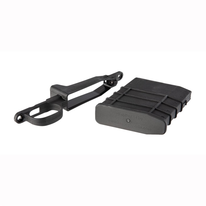 LEGACY SPORTS INTERNATIONAL HOWA 1500 DETACHABLE MAGAZINE DROP-IN KITS The Ammo Boost Detachable Magazine Drop-In Kit for Howa 1500 from Legacy Sports International contains everything you need to boost your 1500's magazine capacity to 5 or 10 rounds. It also gives you the speed and convenience of a detachable box magazine for super-fast reloads. Each Ammo Boost kit consists of (1) the magazine itself and (2) a drop-in bottom metal assembly that replaces your rifle's triggerguard, hinged floorplate, and the surrounding frame. All components are constructed of reinforced, injection-molded, impact-resistant polymer. This super-tough polymer keeps weight and your out-of-pocket cost down. Installation of the Ammo Boost Detachable Magazine Drop-In Kit is fast and simple. Just remove the factory floorplate assembly and install the Legacy parts. Save the factory part in case you ever want to return the rifle to its original configuration. Gives detachable box-mag versatility to Howa 1500 rifles (and clones) 5- and 10-round capacities available Easy, drop-in installation Durable, lightweight molded-polymer construction Additional magazines also available - see separate listings-- EXCLUDES HOWA 1500 SUPERLITE OR WILL NOT WORK WITH THE HOWA 1500 SUPERLITE TORQUE: 30 -35 inch lbs. for screws. Ammo Boost kits are available in both 5-Rd and 10-Rd capacities for long-action (LA) and short-action (SA) Howa 1500 rifles chambered in a variety of popular cartridges. They will also fit Interarms 1500, Mossberg 1500, Smith & Wesson 1500, and Weatherby Vanguard rifles (cat out of the bag: these rifles are all built on Howa 1500 actions!). There's no need to buy a whole new rifle when you can increase the versatility and magazine capacity of the Howa 1500 you already own with an Ammo Boost kit!