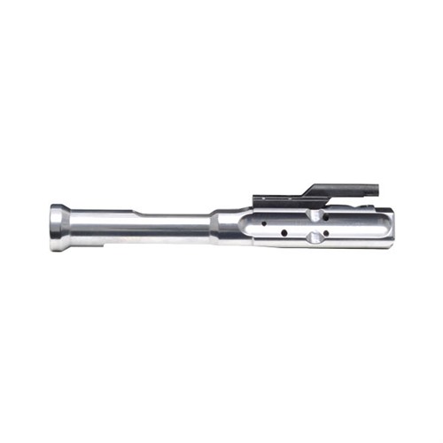 Custom, stainless steel bolt carrier features a 100% increase in bearing surface for smooth cycling and outstanding reliability. Includes the dust cover notch for tactical duty or any application requiring absolute “no-fail” operation. Expanded, exterior, bearing surfaces are hand polished and ensure precise alignment in upper receiver for less wear. Non-plated carrier bore is roller burnished for low-drag movement. Rear of carrier is designed in the AR-15, semi-auto configuration with longer, mil-spec cocking pad in the front. Five-step QPQ process produces an exceptionally hard, wear-resistant high-lubricity black finish. Comes with steel gas key installed. JP LMOS™ Bolt Carrier Small-Frame (.223) Stainless Steel Polished Finish Not for use in .308 AR-type rifles.