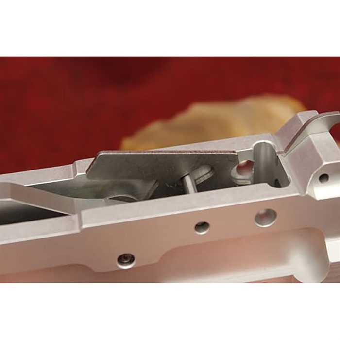 Kun liipaisin on poistettu vastaanottimesta, työnnä ejector pin ja magazine release latch pin 1/3 matkaa ulos bolt hold open -puolelta liipaisimessa. Vedä nykyinen bolt hold open ulos ja liu'uta KIDD Auto Bolt Release paikalleen. Työnnä kaksi pinniä takaisin läpi. Tarkista, toimiiko se oikein painamalla osaa lähellä magazine release -vipua nähdäksesi, nouseeko auto bolt release -mekanismin yläpuoli ylös.